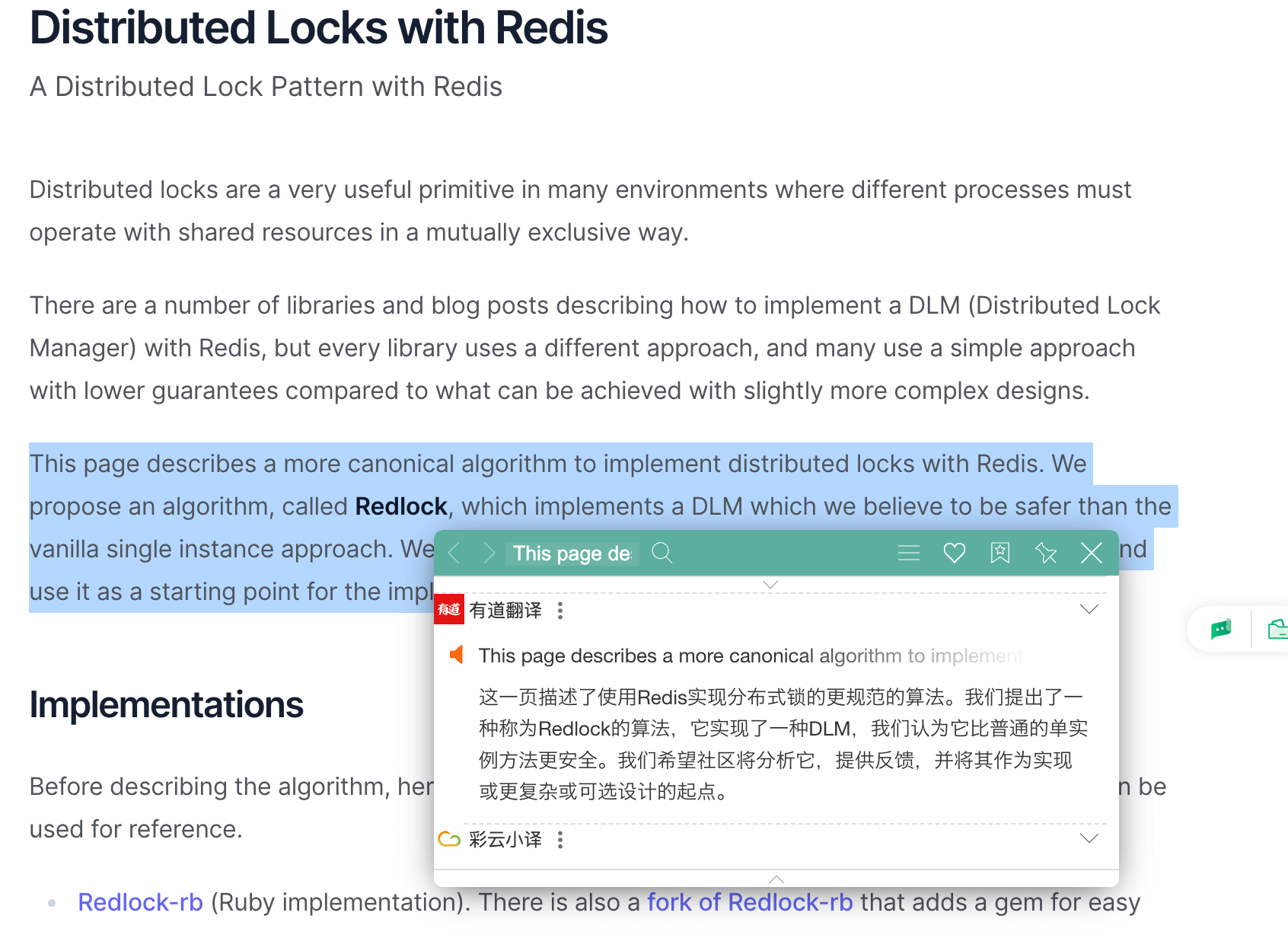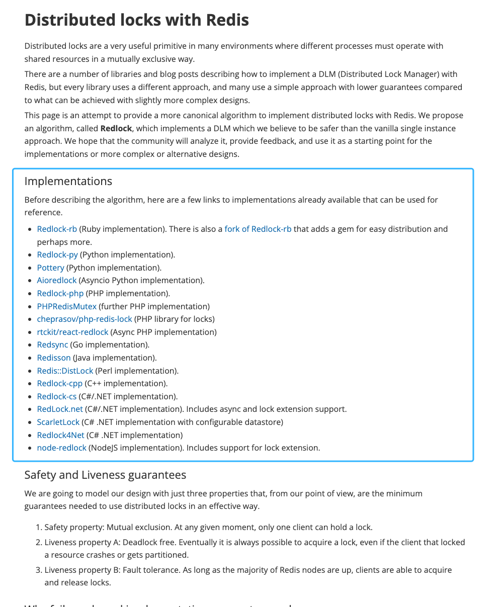 对于 Java 开发的小伙伴来说,已经有了现成的解决方案:Redisson 。其他语言的解决方案,可以在 Redis 官方文档中找到,地址:https://redis.io/topics/distlock 。